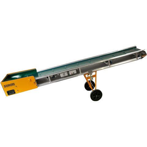 Przenośnik taśmowy SoRoTo® jest dostępny w rozmiarach od 2 do 8 m i można go oczywiście łączyć szeregowo, dzięki czemu można ominąć narożniki i przenosić materiał tak daleko, jak chcesz.